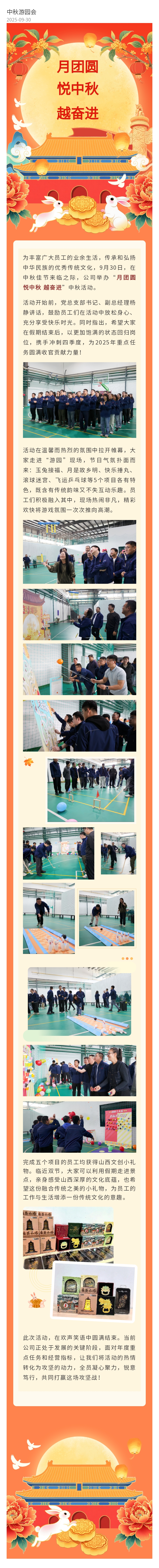 The company hosts the "Moonlit Reunion, Joyful Mid-Autumn Festival, Steadfast Progress" Mid-Autumn event.