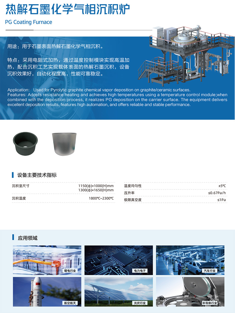 Application: Used for Pyrolytic graphite chemical vapor deposition on graphite/ceramic surfaces.